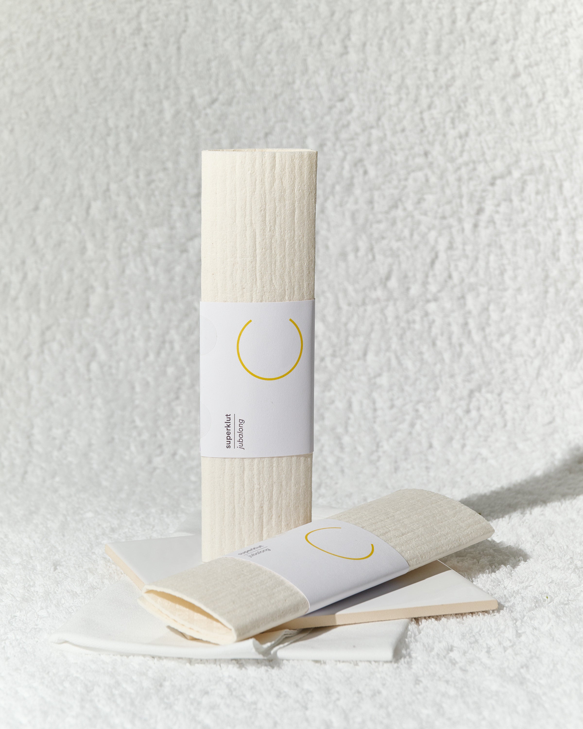 Superkluten er en helt plastfri og naturlig vaskeklut med en svampaktig konsistens. Som et flak når den er tørr, og myk med suveren sugeevne når den er våt.